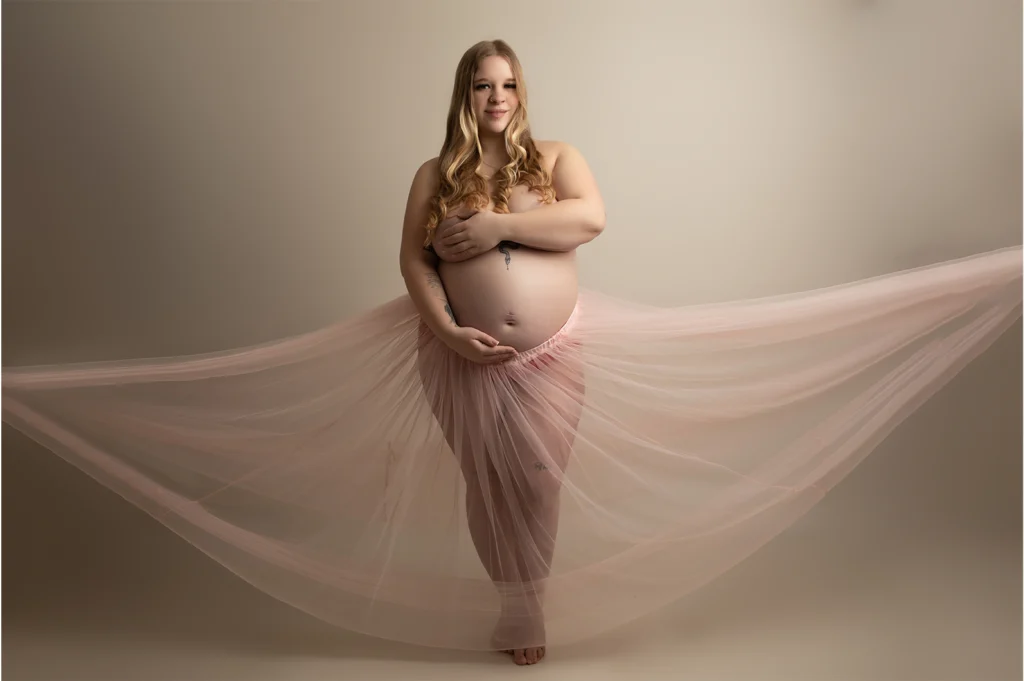 Your maternity session takes place in our beautiful studio located in Kinoulton, Nottingham. We will collaborate to select the perfect color scheme and create stunning, personalised portraits that highlight the beauty of your new baby.