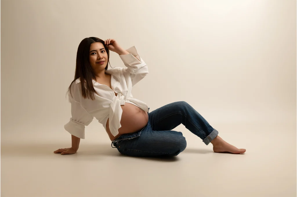 The best time for your pregnancy photoshoot is between 28-34. This is when you’ve just come out of the second trimester and your bump is a nice size. You’re also still in the blooming stage, so the perfect time to capture this special time. If you’re expecting twins (or more), it’s best to schedule your maternity shoot a little earlier at 26-30 weeks.
