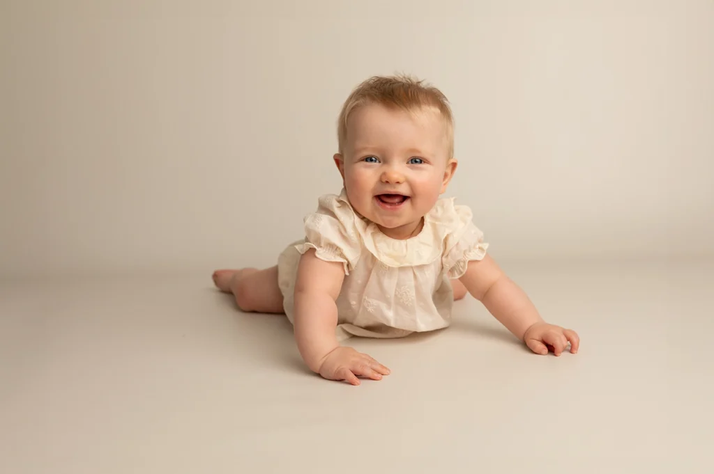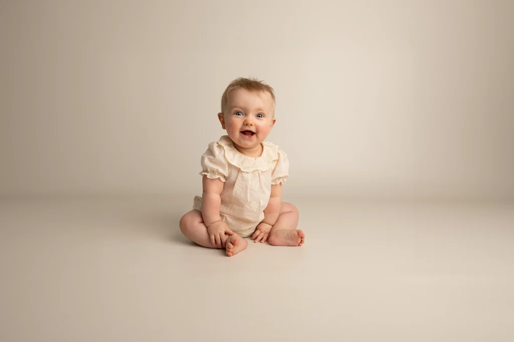 Little Sitters sessions are perfect for babies aged between 3 and 12 months. Many parents choose to book sessions at traditional milestones, such as when their baby can sit unaided (around 6 months) or for their first birthday. These sessions are a wonderful way to capture your baby’s growth and development. However, I welcome babies at any age. The best advice is to book a session at a time that feels right for you and your baby.